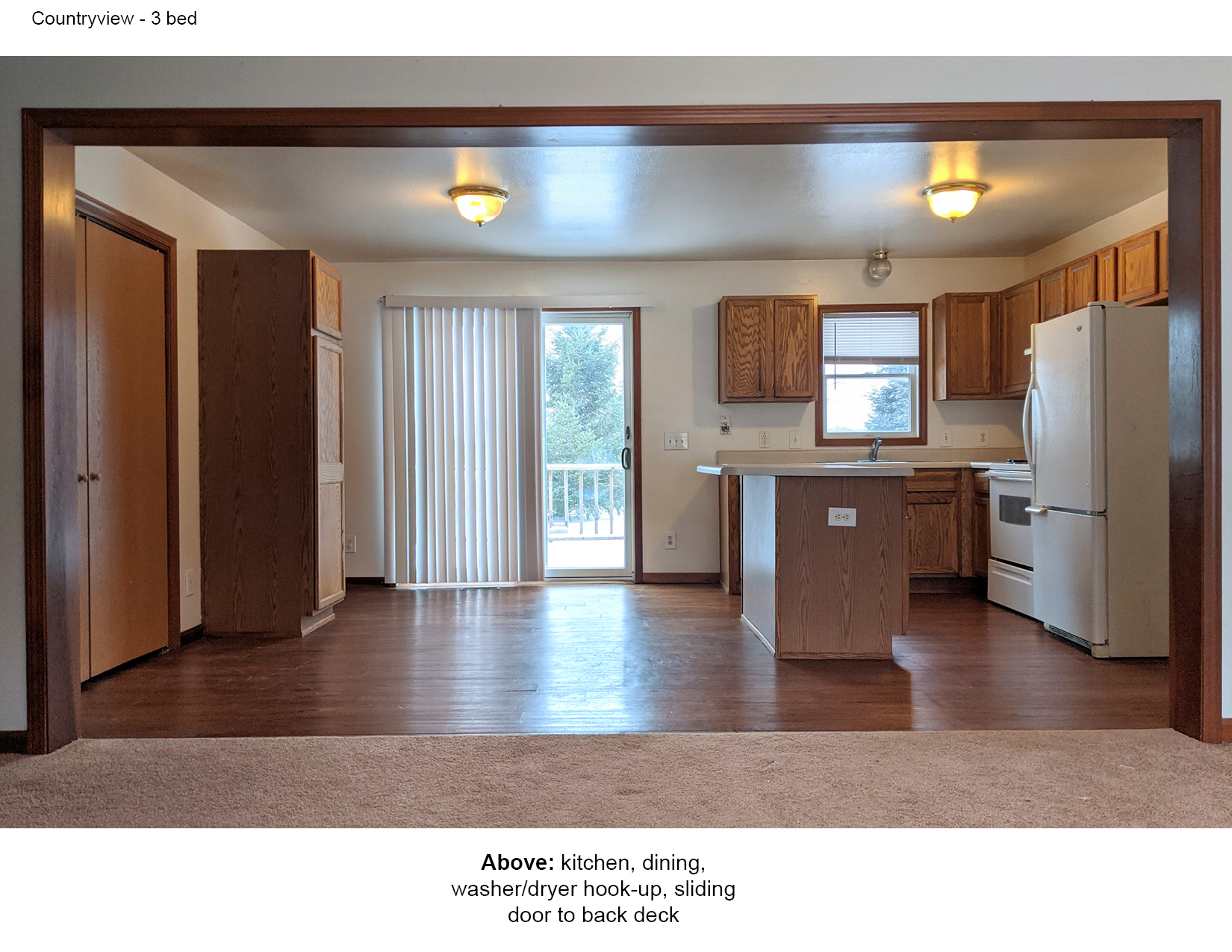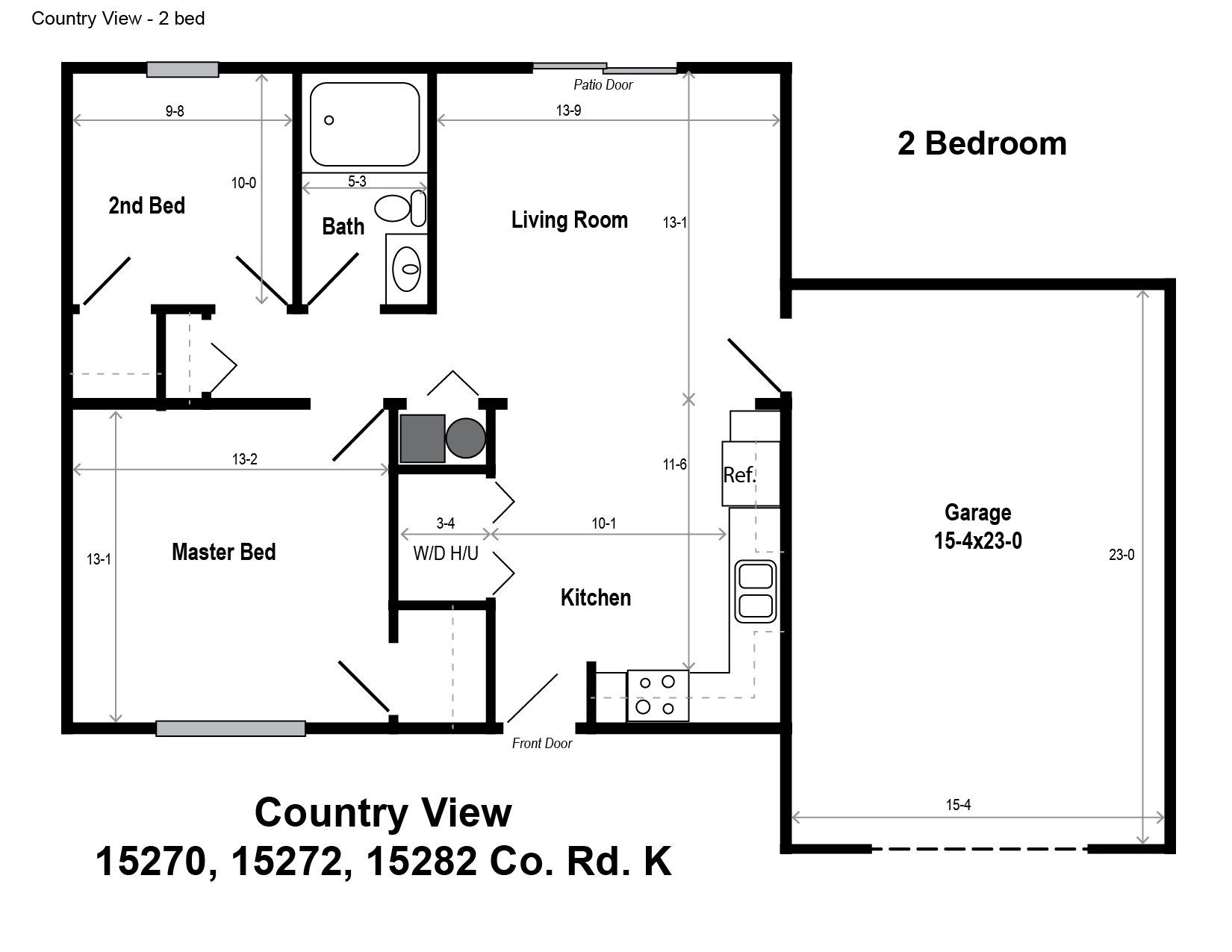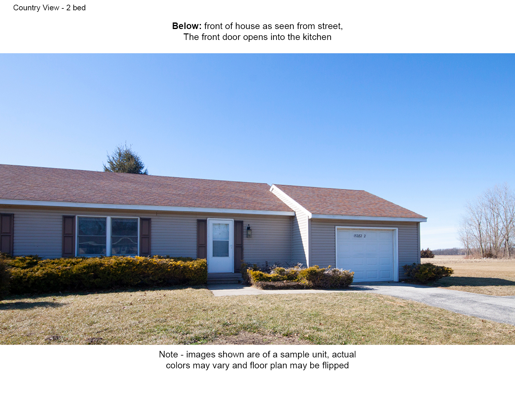 Countryview is a neighborhood located three miles north of Wauseon on SR 108, then 1/4 mile west on CR K. It consists of four duplexes built in 2000-2001. Each unit has their own 1/2 acre yard, driveway, attached 1 1/2 car garage, central air conditioning and heat, washer/dryer hookups, a range, a refrigerator, a dishwasher, a disposal, and a deck from the rear patio door. Pets are allowed; however, please check the restrictions and additional fee listed in the pet addendum. Well water and refuse are included in the rent. Check the table below for prices and features at Countryview.