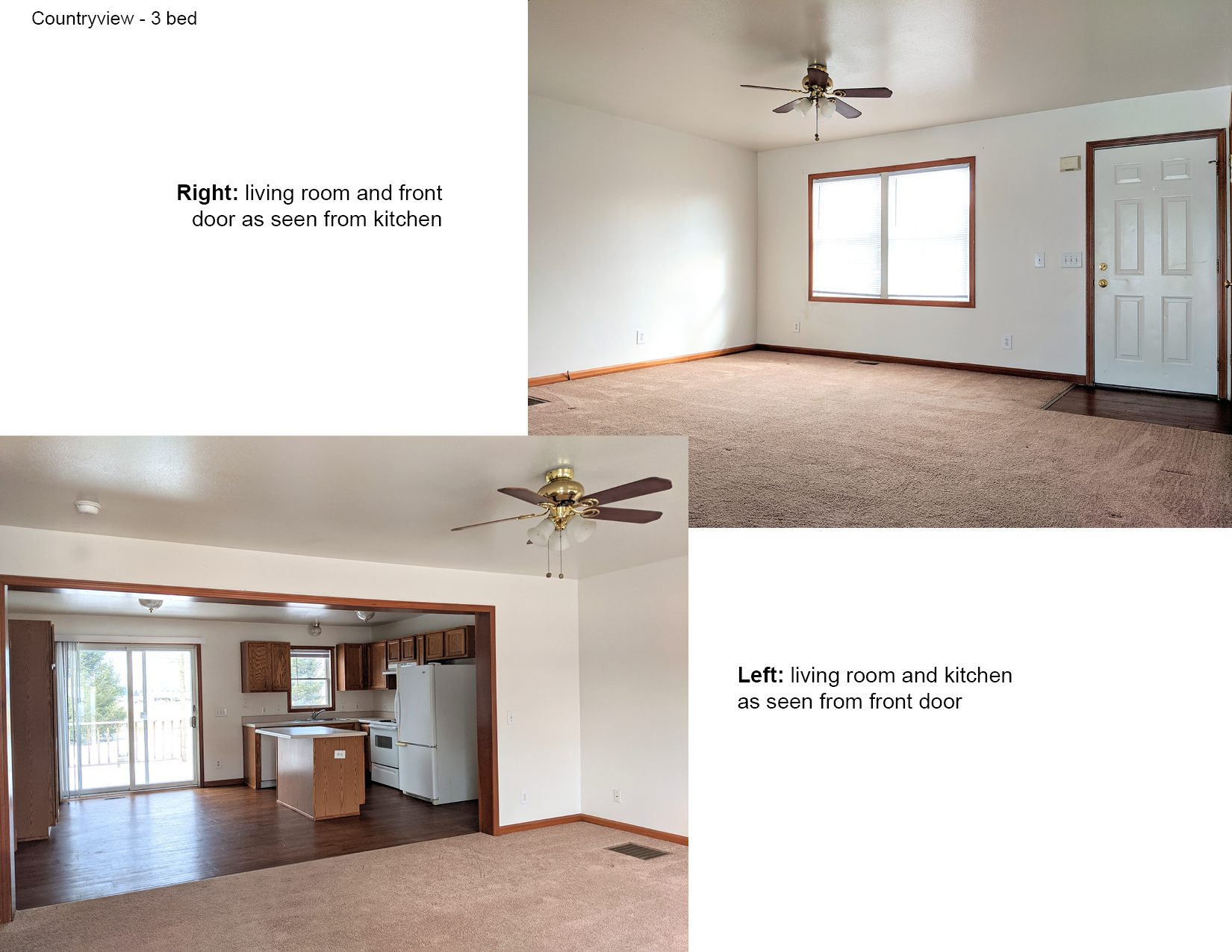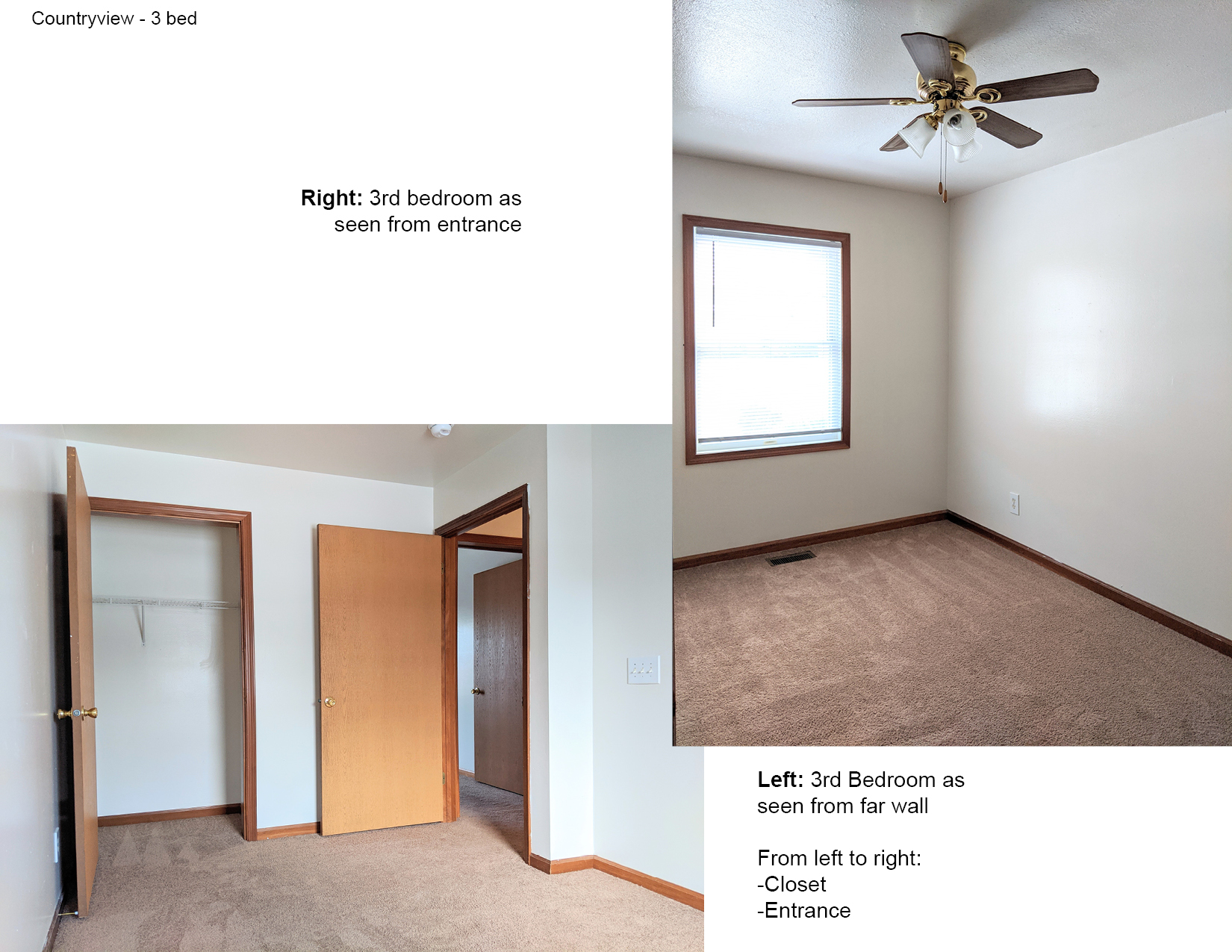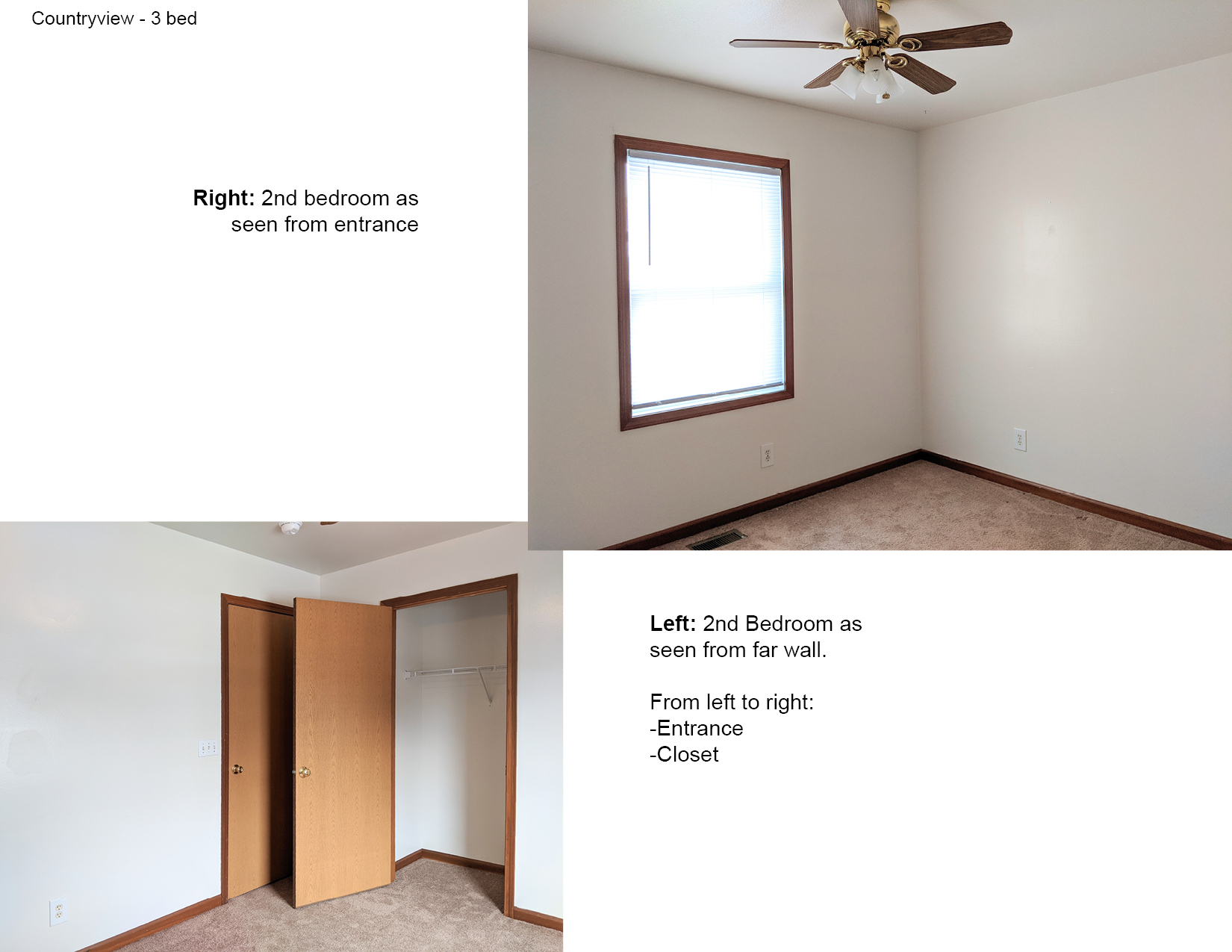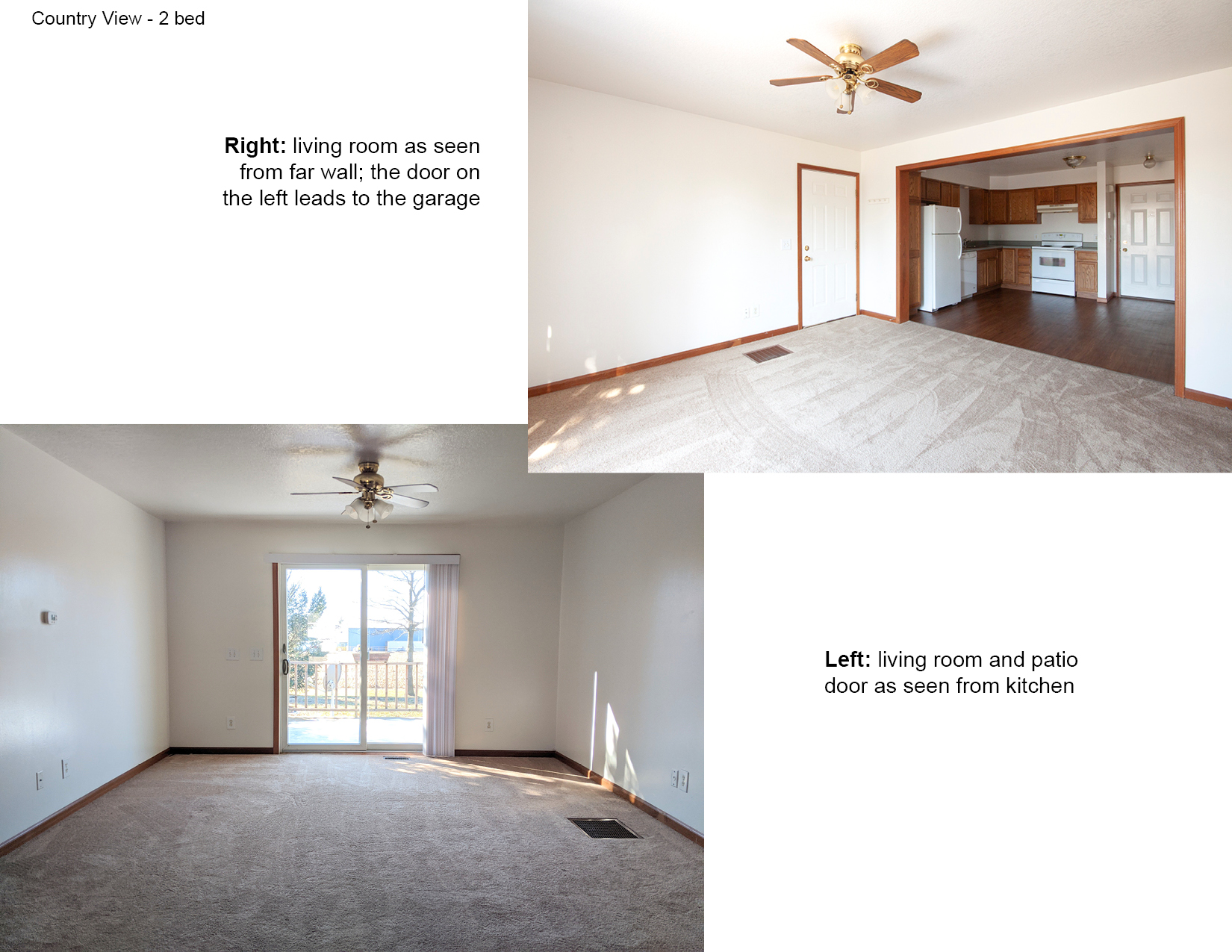 Countryview is a neighborhood located three miles north of Wauseon on SR 108, then 1/4 mile west on CR K. It consists of four duplexes built in 2000-2001. Each unit has their own 1/2 acre yard, driveway, attached 1 1/2 car garage, central air conditioning and heat, washer/dryer hookups, a range, a refrigerator, a dishwasher, a disposal, and a deck from the rear patio door. Pets are allowed; however, please check the restrictions and additional fee listed in the pet addendum. Well water and refuse are included in the rent. Check the table below for prices and features at Countryview.