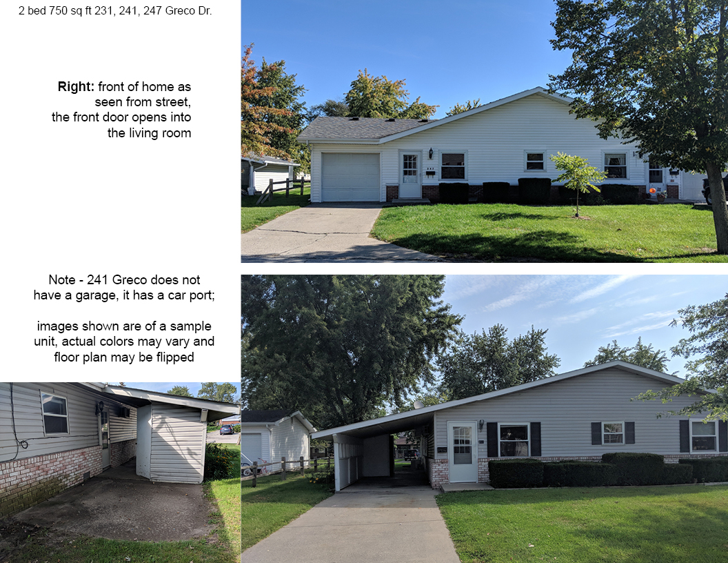 Greco and Darlene Drive contains one-, two-, and three-bedroom single level duplexes and triplexes located North from the East end of Cherry Street. The high school, elementary school, and primary school are all within 3 blocks. It is a well maintained and decent place to live in an older but nice part of town. Each unit has private outside entrances; most of the units have their own yard, driveway, and garage. Pets are allowed; however, please check the restrictions and additional fee listed in the pet addendum. No utilities are included in the rent. Check the table below for all the features at Greco & Darlene.