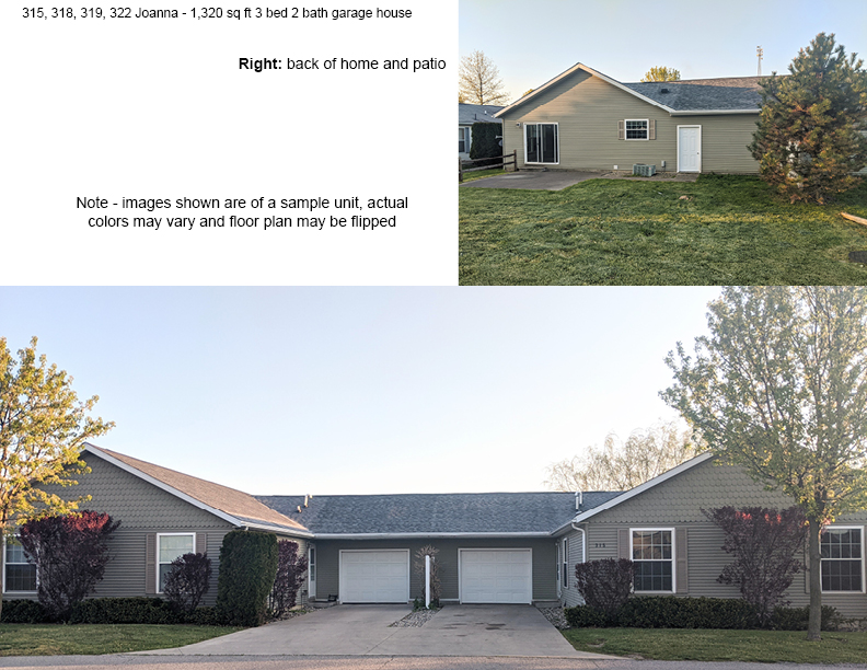 We also have a number of duplexes. Countryview, consisting of 8 units, set on 12 acres provides plenty of open yard. The duplexes at Oldfield Village include privacy fences and individual decks/patios so residents still have their own space and access to a well-equipped community environment. Most of the duplexes and triplexes at Greco and Darlene Drive, Spruce Street, and 701 through 741 Fairway Drive at Ironwood Village have some combination of private patios, yards, driveways, garages, and entrances, and would be a possible alternative at a lower cost.