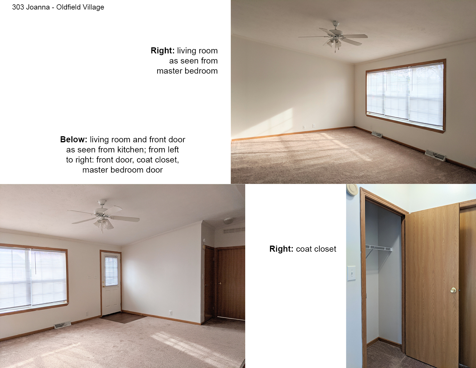 303 (wheelchair accessible) | Oldfield Village | $889 | 1375 | 3 | Y | Y | Y | Y | Y | Y | Y | Y | Y | 4 | B | P | Y | 2 | Yes | Y | House | ||||||||