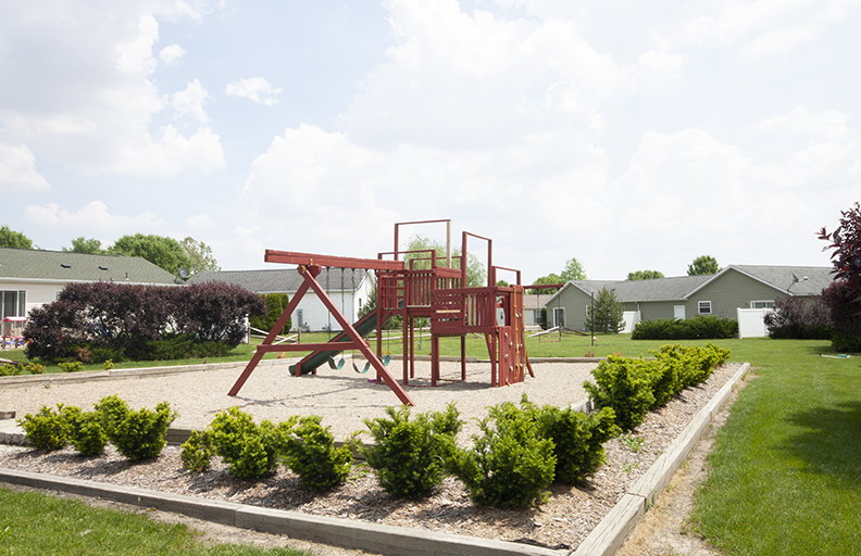 This neighborhood is designed to accommodate families and retirees alike. Nestled off any main roads, the streets in the village are all 15 miles an hour with speed bumps so children can ride their bikes and you can take walks in safety. At the heart of the complex is a playground. On the north side is a half soccer field and half basketball court.